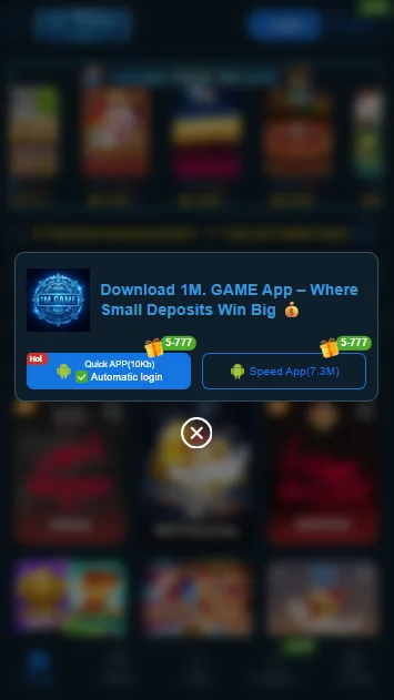 1M is an Android game application also help users with different interesting games in one APK. Also provide with a wallet for deposits and withdrawals of funds. Players can also access to reward and bonuses features, daily login bonuses, and referral rewards within the game app. It also supports local payment accounts in Pakistan, like JazzCash and Easypaisa. Moreover, the platform focuses on fast and smooth game access, user-oriented navigation and HD display. more gamers 345WIN game, ZS777 game and DCC6 game