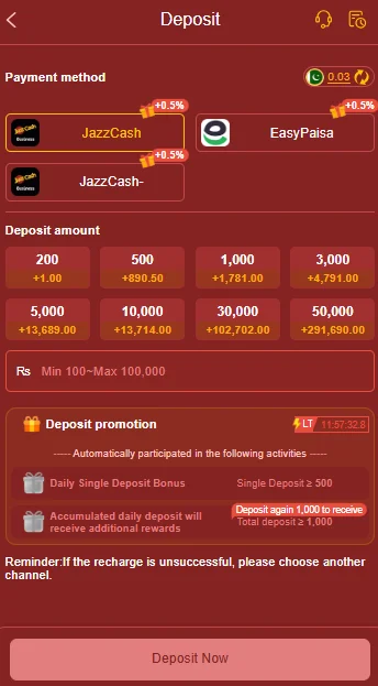 - Deposit money using EasyPaisa or JazzCash